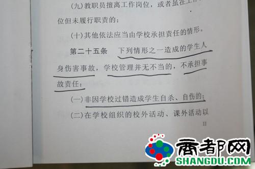 郑州市中小学校学生人身伤害事故与处理条例第二十五条。商都网刘东晓(摄)